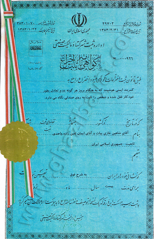 گواهینامه ثبت اختراع کمربند ایمنی هوشمند