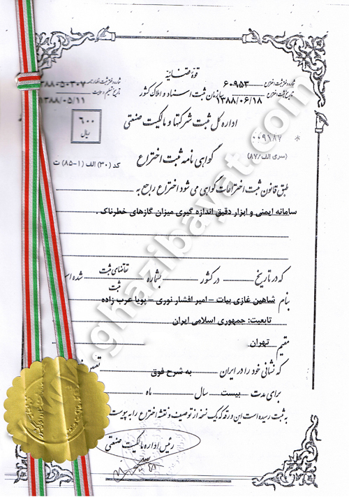 گواهینامه ثبت اختراع دستگاه نشت یاب گاز