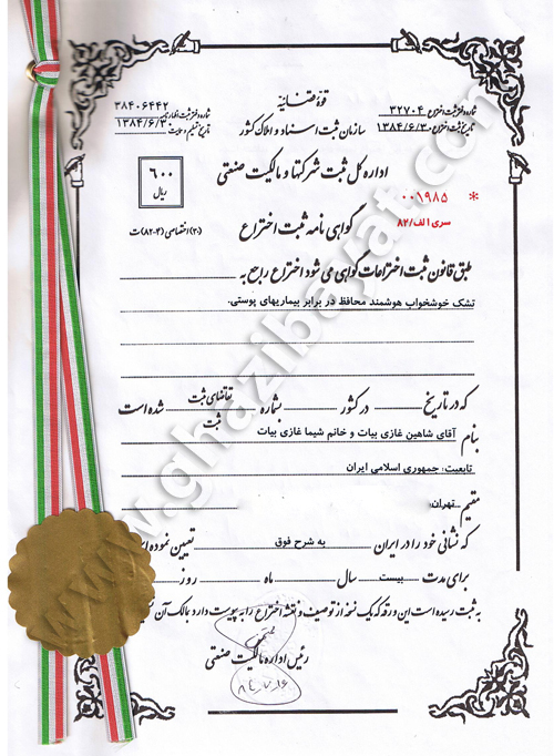 گواهینامه ثبت اختراع رادیاتور بدون رسوب و صرفه جویی کننده در مصرف انرژی